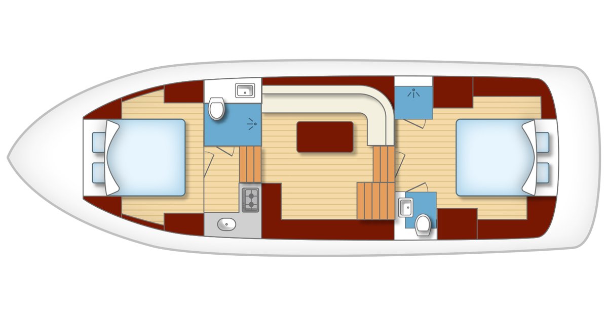 Diese Yacht bietet Ihnen alles für entspannte Tage auf dem Wasser. Das großzügige Achterdeck mit Sitzecke, Deckstühlen und Sonnenschutz lädt zum Verweilen ein. Die Badeplattform mit Heckdusche sorgt für Erfrischung zwischendurch.