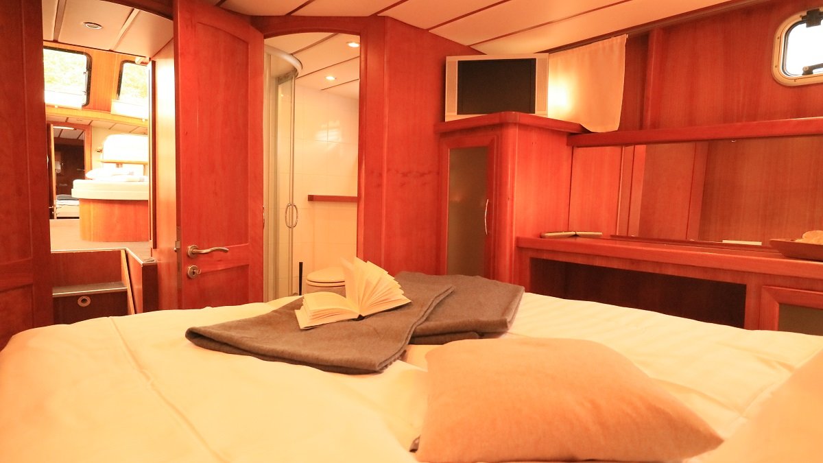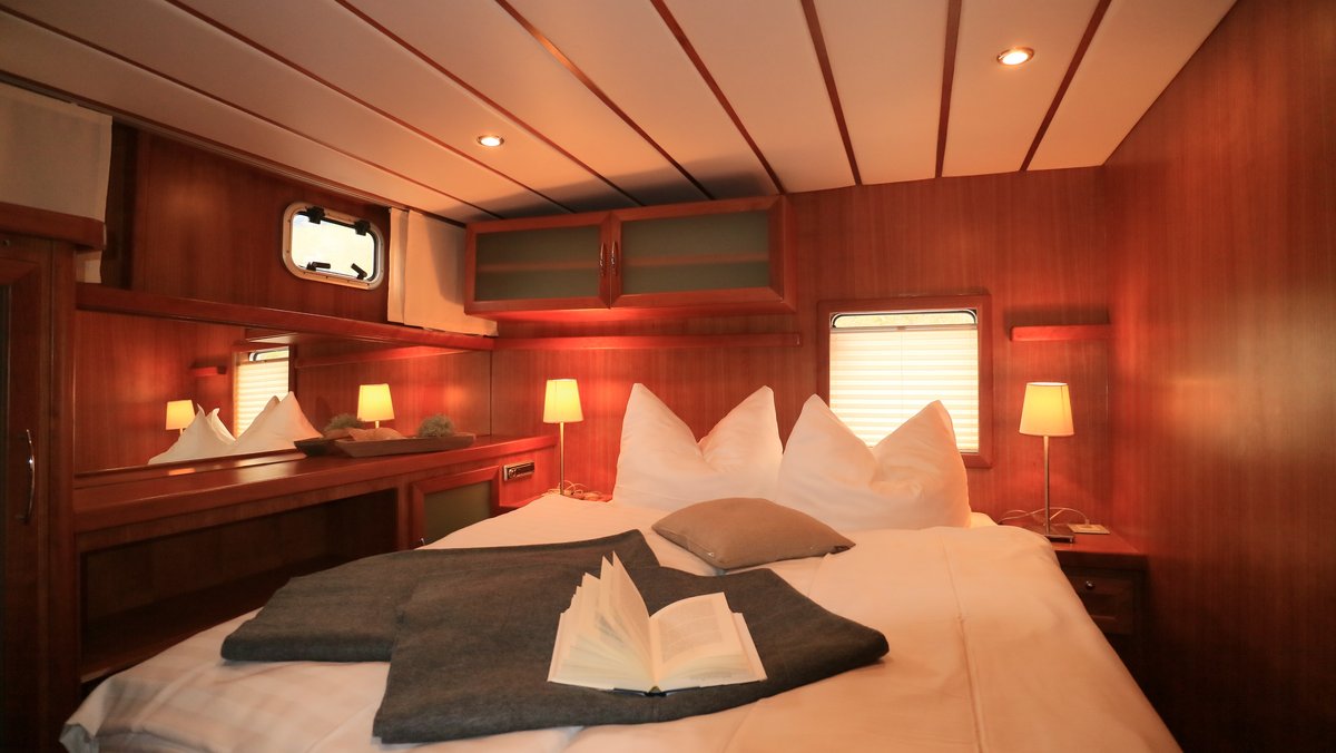 Auf dieser Yacht wird der Urlaub zelebriert. Zwei französische Betten und eine dritte Kabine mit Doppelbett ermöglichen auch der großen Familie den Spaß auf dem Wasser. Die elegante Ausstattung und eine Inneneinrichtung mit kleinen Finessen wissen zu überzeugen. Genießen Sie Ihre wertvollen gemeinsamen Tage auf der Müritz. Ahoi!
